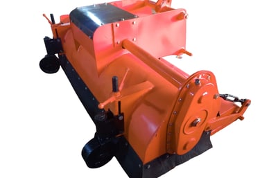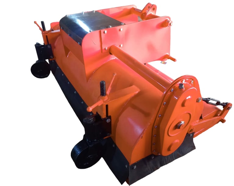 At Mahalaxmi Earthmovers, we specialize in manufacturing high-quality tractor-mounted hydraulic and mechanical sweepers, designed for efficiency and durability, featuring a vibrant orange color that stands out in any environment.